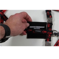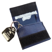 Das Namenslogo wird auf dem Rückensteg des Hundegeschirrs mit Hilfe eines Klettverschlusses befestigt. Es kann zusammen mit dem Kleines Täschen zum Verstauen